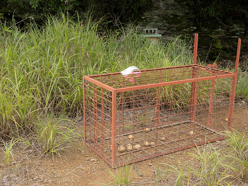 山の中に仕掛けられた箱罠