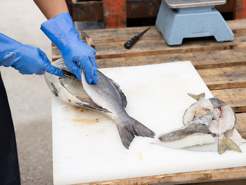 改良した包丁でイスズミを素早く処理
