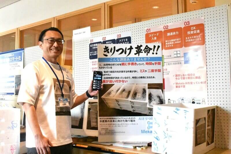 気仙沼出身で父親が漁師という家庭で育った畠山氏は、大手銀行の法人営業としてのキャリアを重ねる傍ら、水産業の現場で地道なヒアリングを重ね、人手不足、情報の分断、アナログ取引の非効率といった地方の水産業が抱える課題に改めて直面。「紙とFAXが今も主流。せっかくのデータが蓄積されず、経験と勘に頼った取引が続いている」と感じ、そこに、デジタルと金融を融合させた発想が生まれた。「きりつけ革命」は今後、MUFGグループの支援を受けて事業化が進む予定だ。