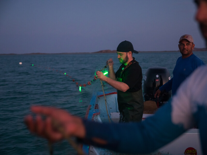 米・アリゾナ州立大学の研究チームは岸刺し網漁師チームと協働し、太陽光発電式LEDライトを備えた漁網用ブイを開発した。