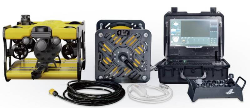 各モデルの基本セットの価格は約40万〜100万円とさまざまで、用途や予算に応じて最適なモデルを選択できる。直感的な操縦と8基スラスターの安定性が特長。濁った水中でも稼働できるようソナーが搭載できるほか、必要に応じて、衝突防止センサーの搭載や採水など、用途に合わせてオプションの拡張もできる。